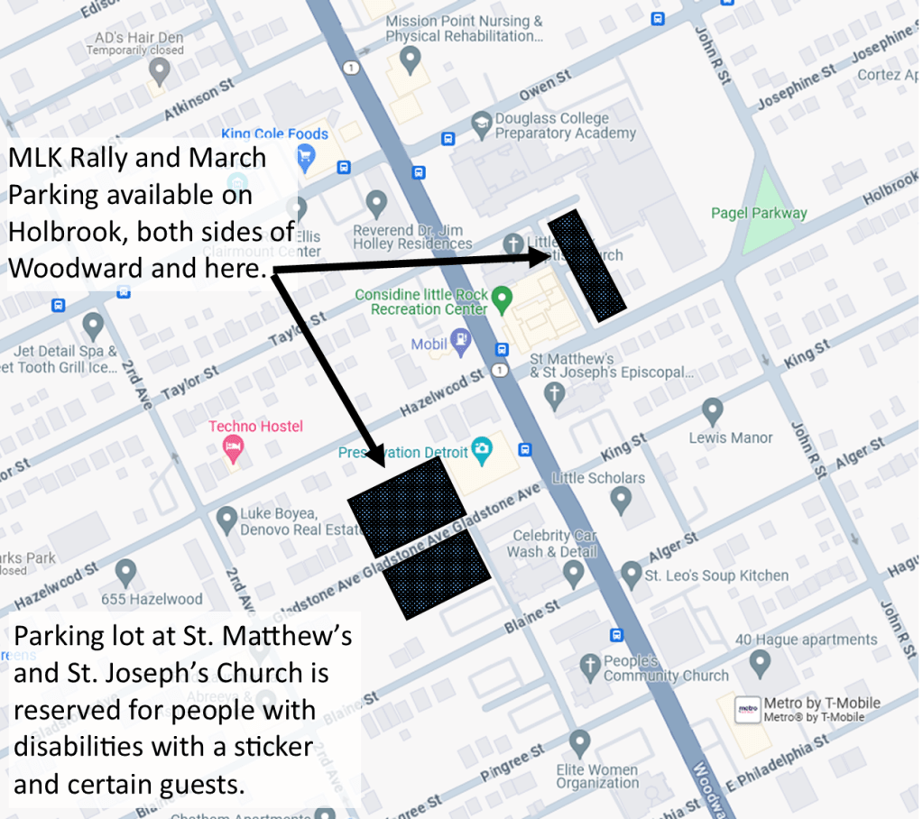 Land Acknowledgement – Aurora Harris Libation – Shushanna Shakur Welcome – The Rev. Anthony Estes, St. Matthew’s and St. Joseph’s Episcopal Church Lift Every Voice and Sing – Zania Alaké-vocalist, Alan Dennard-trumpet, Butter Hawkins-drums, Bill Meyer electric keyboard LaShelle’s School of Dance Stand up – Jenna Edwards, singer with Alan Dennard-trumpet, Terrance Neal-drums, Bill Meyer electric keyboard LaShelle’s School of Dance SEIU Health Care Michigan Frank Hammer, former president, UAW Local 909 – Colombian workers struggle against GM update Alexander Webb, Anishinaabe Dream Song Steve Rimmer, Detroit Tenants Union Huwaida Araf, Global Sumud Flotilla Kenneth Russell, 482Forward, Spoken word Peace and Justice Offering, music by Bill Meyer Nafisa Tazrin & Tasfia Ononena, 482Forward, MIStudentsDream, Immigration Justice J.C. ~ A Creative The People’s Spirit of Detroit Award: Marguerite Maddox, Disability Rights Fighter People’s Spirit of Detroit Awards – Long Distance Runners Presented by Malik Yakini Daii Dreamiin, U.S. General Strike Detroit, Spoken word Mark Fancher, National Conference of Black Lawyers Closing of Rally – Happy Birthday MLK by the jazz quartet